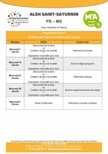 ALSH Saint-Saturnin > ST SAT programme cycle PS-MS